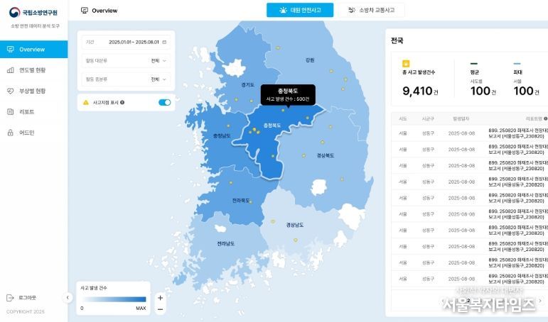 서울복지타임즈 이재연 기자 | 소방청은 소방대원의 현장 안전사고 및 소방차 교통사고를 보다 효율적으로 관리하고 예방하기 위해 데이터 시각화 시스템을 구축했다고 밝혔다. 이번 시스템은 소방청에서 제공한 최근 5년간의 안전사고 데이터를 기반으로, 소방대원의 사고 경향 분석을 지원하며, 이를 통해 효율적인 사고 예방 및 재발 방지 대책 수립을 돕는다.