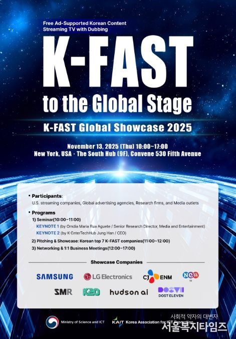 서울복지타임즈 이재연 기자 | 과학기술정보통신부는 국내 최초로 K-FAST를 북미에 홍보하기 위한 행사인 '글로벌 K-FAST 쇼케이스'를 11월 13일(현지시간), 뉴욕에서 개최한다고 밝혔다.