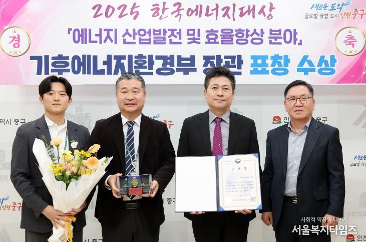 서울복지타임즈 이재연 기자 | 인천시 중구는 그간 재생에너지 산업 발전을 위해 추진해 온 다양한 노력을 인정받아 한국에너지공단이 주관하는 ‘2025 한국에너지대상’에서 기후에너지환경부 장관 표창의 영예를 안았다고 18일 밝혔다.