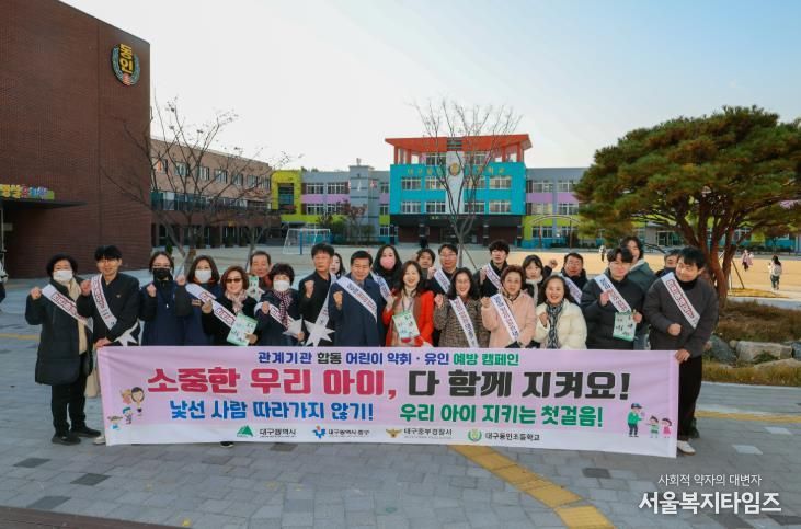 서울복지타임즈 이재연 기자 | 대구 중구는 지난 18일 중부경찰서, 중구 안전보안관, 동인초등학교 교직원 등과 함께 동인초등학교 일원에서 어린이 약취·유인 예방 캠페인을 했다.