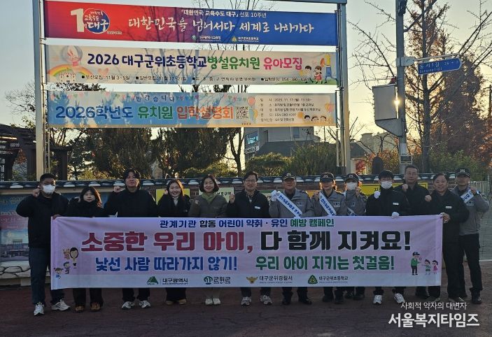 서울복지타임즈 이재연 기자 | 군위군은 11월 18일 오전 8시, 군위초등학교 정문 일대에서 어린이 약취·유인 예방을 위한 관계기관 합동 캠페인을 실시했다고 밝혔다.