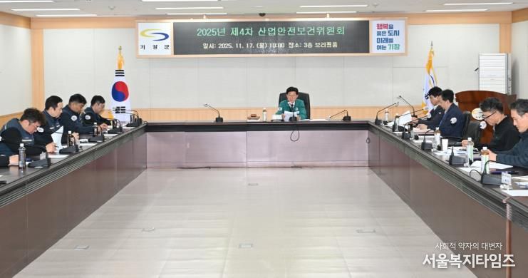 서울복지타임즈 이재연 기자 | 기장군은 지난 17일 기장군청 브리핑룸에서 군 소속 근로자의 안전한 근로환경과 산업재해 예방을 위해 ‘2025년 제4차 산업안전보건위원회’를 개최했다고 19일 밝혔다.