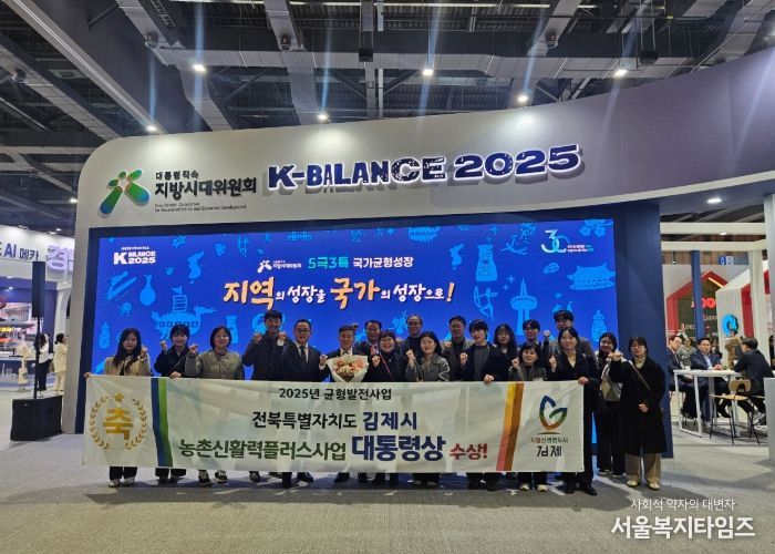서울복지타임즈 이재연 기자 | 김제시가 농촌 지역의 자립적 발전과 청년 주도형 혁신 거버넌스 구축을 통해 농촌 활성화에 기여한 공로를 인정받아 2025년 대통령 표창을 수상했다.