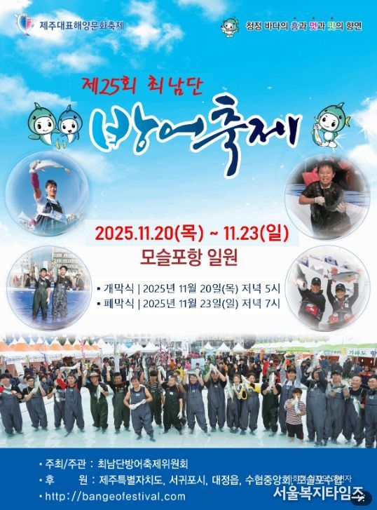 서울복지타임즈 이재연 기자 | ‘제25회 최남단 방어축제’가 20일 ‘청정 바다의 흥과 멋과 맛의 향연’을 주제로 서귀포시 대정읍 모슬포항 일대에서 개막한다.