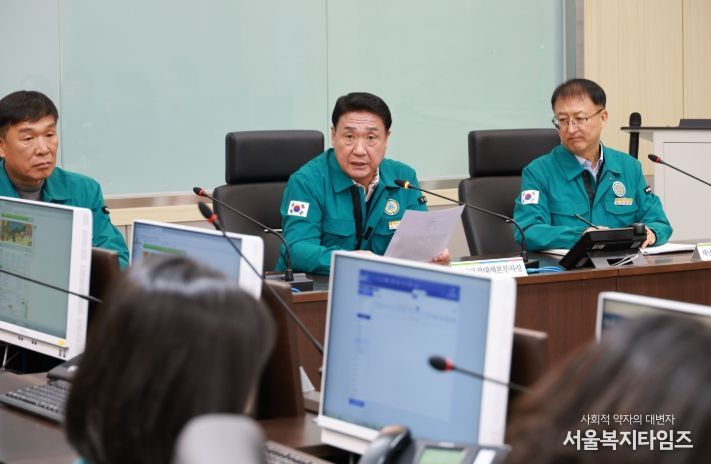 서울복지타임즈 이재연 기자 | 충북 영동군 용산면 소재 종오리 농장(1호, 4,100수)에서 고병원성 조류인플루엔자(AI)가 발생함에 따라 운영 중인 재난안전대책본부 상황실에 19일 정영철 영동군수가 방문하여 비상근무 중인 직원들을 격려하고 방역 대응 태세를 점검했다.