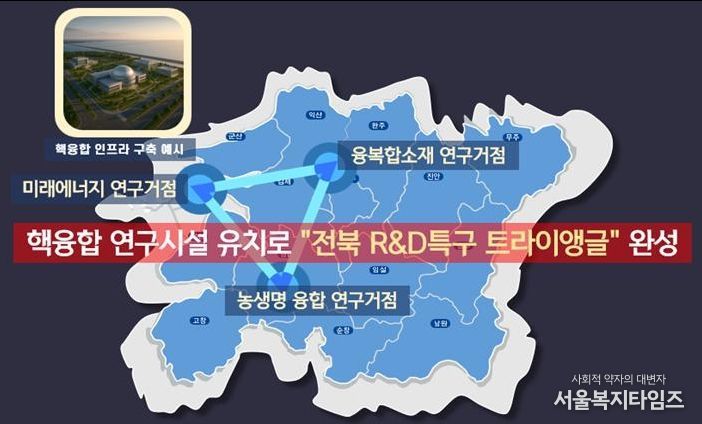 서울복지타임즈 이재연 기자 | 전북특별자치도가 '인공태양'으로 불리는 핵융합 연구시설 유치에 총력을 기울이고 있다. 도는 15년 전부터 관련 인프라를 단계적으로 준비해 왔다. 탄소중립 시대 에너지 자립의 핵심 기술로 평가받는 핵융합 분야는 글로벌 시장 규모만 10년 내 400조 원 이상 증가할 전망이다. 이재명 대통령이 "첨단산업 테스트베드로 조성하겠다"고 밝힌 새만금은 교통·전력·연구 네트워크를 모두 갖춰 최적 입지로 손꼽힌다. 차세대 청정에너지 확보를 위해 지역 정·관·산·학이 한목소리를 내며 반드시 성사시켜야 할 과제로 추진 중인 핵융합 연구시설에 대해 살펴본다.