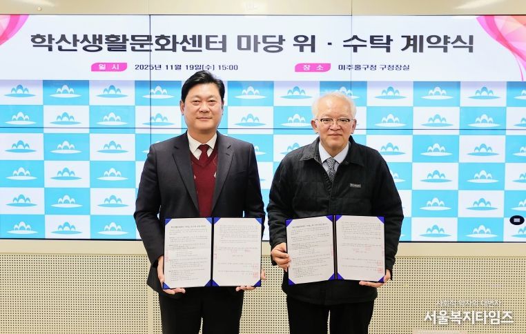 서울복지타임즈 이재연 기자 | 인천 미추홀구는 지난 19일 미추홀학산문화원(원장 정형서)과 학산생활문화센터 ‘마당’의 안정적 운영을 위한 위수탁 계약을 체결했다.