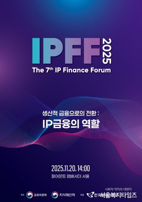 서울복지타임즈 이재연 기자 | 지식재산처와 금융위원회는 11월 20일 14시 페어몬트 앰배서더(서울 영등포구) 그랜드볼룸에서 '제7회 지식재산 금융포럼'을 공동 개최했다.
