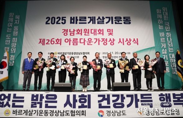 서울복지타임즈 이재연 기자 | 경상남도가 20일 창원컨벤션센터에서 열린 ‘2025 바르게살기운동 경남 회원대회 및 제26회 아름다운 가정상 시상식’에서 지역사회 봉사에 앞장서 온 회원들을 격려했다.