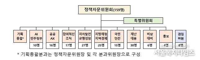 향후 1년(’25.11.24.~’26.11.23.)간 활동하게 되는 제8기 정책자문위원회는 학계·연구원·기업·시민사회 등 다양한 분야의 전문가 159명이 위촉됐으며, 행정안전부 조직개편(’25.11.25. 시행 예정) 내용과 연계해 10개 분과로 구성됐다.