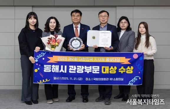 서울복지타임즈 이재연 기자 | 동해시는 지난 21일 서울 국회의원회관에서 열린 ‘제2회 대한민국 지자체 홍보대상 시상식’에서 관광분야 우수 홍보 지자체로 선정됐다.