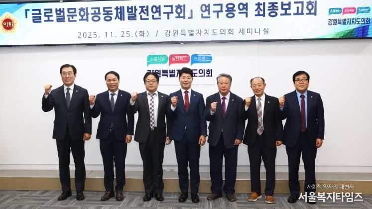 서울복지타임즈 이재연 기자 | 강원특별자치도의회 '글로벌문화공동체발전연구회' 는 11월 25일 도의회 세미나실에서 '강원특별자치도 이민정책 추진 방향' 연구용역 최종보고회를 개최했다.