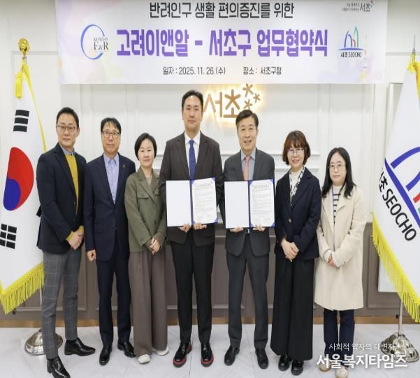 서울복지타임즈 이재연 기자 | 서울 서초구는 26일, 반려인구의 지속적 증가에 대응해 반려인의 생활편의를 높이고 쾌적한 공원 환경을 조성하기 위해 환경관리 전문업체 ㈜고려이앤알과 '반려견 분변수거함 확대 설치 및 관리에 관한 업무협약(MOU)'을 체결했다고 밝혔다.