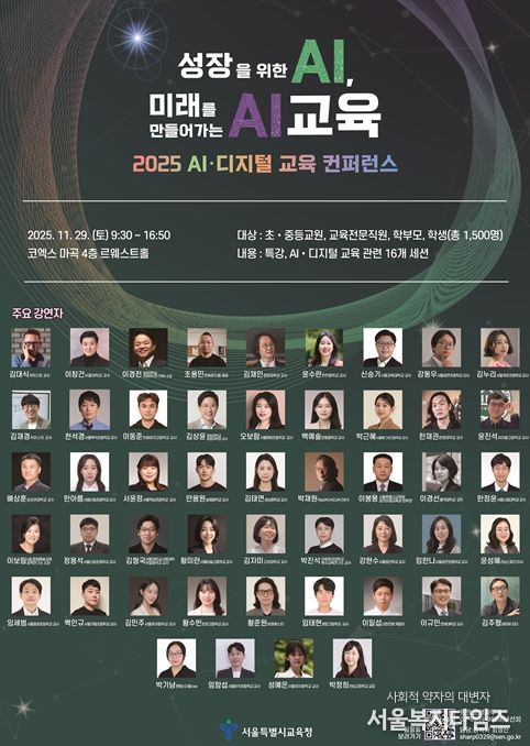 서울복지타임즈 이재연 기자 | 서울특별시교육청(교육감 정근식)은 AI 시대 학습자의 성장을 체계적으로 지원하고, 공교육이 나아가야 할 미래교육의 방향을 모색하기 위해 '2025 AI·디지털 교육 컨퍼런스'를 11월 29일 마곡 코엑스에서 개최한다.