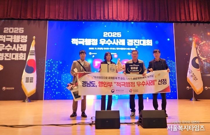 서울복지타임즈 이재연 기자 | 경남도가 지난 27일 열린 행정안전부 ‘2025년 적극행정 우수사례 경진대회’에서 ‘적극행정으로 국제중재 첫 승소, 138억 절감 도민에게 돌려줘’ 사례로 기관 표창(인사혁신처장상)을 받았다고 28일 밝혔다.