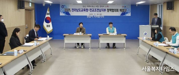 서울복지타임즈 이재연 기자 | 전라남도교육청과 전국교직원노동조합 전남지부는 28일 전라남도교육청 중회의실에서 노사 양측 관계자들이 참석한 가운데 ‘2025년 정책협의회 체결식’을 가졌다.