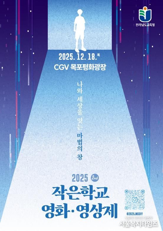 서울복지타임즈 이재연 기자 | 전라남도교육청이 12월 18일부터 20일까지 목포 CGV 평화광장과 폰타나비치호텔, 목포시네마MM 등에서 ‘2025. 전라남도교육청 작은학교 영화‧영상제’를 연다.