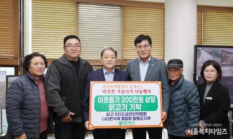 정성호 한국육계협회 함평군지부장은 “작은 나눔이지만 어려운 이웃들에게 따뜻한 도움이 되길 바란다”며 “앞으로도 군민 건강 증진과 더불어 소외계층을 위한 지속적인 나눔 활동으로 지역사회에 보탬이 될 수 있도록 노력하겠다”고 말했다.