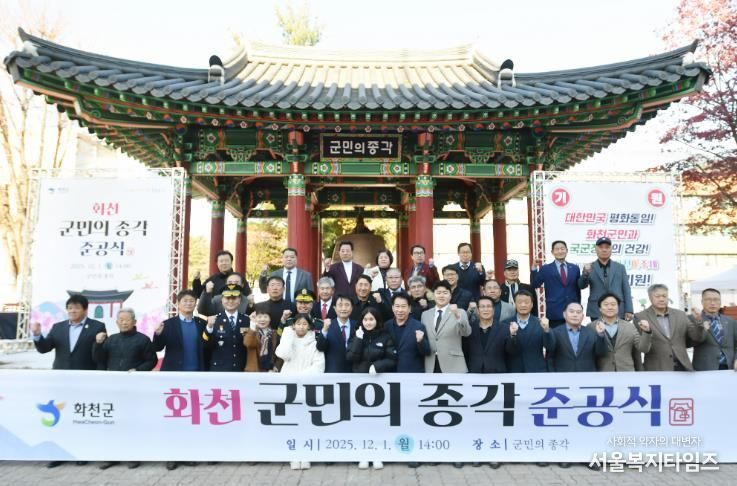 서울복지타임즈 이재연 기자 | 화천군민의 화합과 안녕을 염원하는 ‘화천군민의 종’과 종각이 1일 처음으로 모습을 드러냈다.