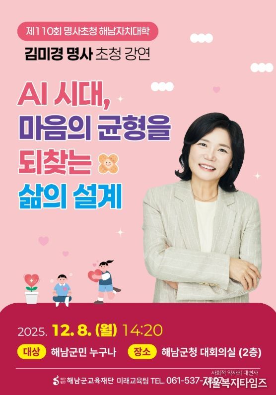 군 관계자는“이번 강연을 통해 군민들이 AI 시대에 필요한 관점과 균형 잡힌 삶의 태도를 배우는 의미 있는 시간이 되길 바란다”며“앞으로도 군민의 삶의 질 향상을 위한 다양한 교육 프로그램을 지속적으로 운영하겠다”고 밝혔다.