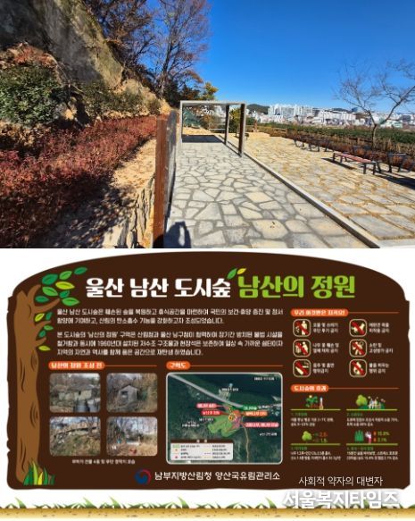 서울복지타임즈 이재연 기자 | 산림청 양산국유림관리소(소장 김병한)는 울산광역시 남구에 조성하는 '울산 남산 도시숲'이 '2025년 하반기 산림청 적극행정' 최우수 사례로 선정되었다고 밝혔다.