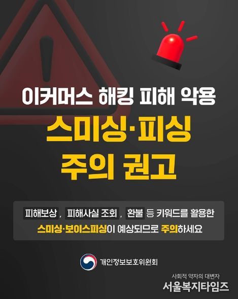 피해보상, 피해사실 조회, 환불 등 키워드를 활용한 스미싱·보이스피싱이 예상되므로 주의하세요.