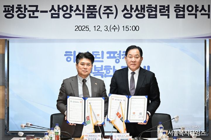 서울복지타임즈 이재연 기자 | 평창군과 삼양식품은 지방 소멸 위기에 대응하고 지속 가능한 지역 성장 기반을 마련하기 위해 ‘지방 살리기 상생 자매결연’ 업무협약을 체결했다.