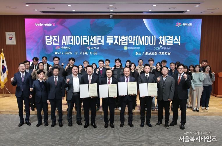 서울복지타임즈 이재연 기자 | 당진시는 4일 충남도청에서 당진시장, 충남도지사, ㈜지엔씨에너지 안병철 대표이사, ㈜디씨코리아 정영훈 대표이사를 비롯한 주요 관계자가 참석한 가운데 AI데이터센터 투자협약(MOU)을 체결했다고 밝혔다.