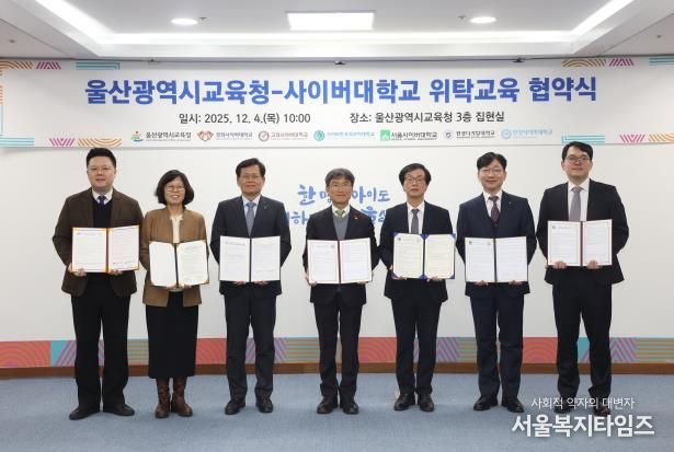 서울복지타임즈 이재연 기자 | 울산광역시교육청은 4일 10시 집현실에서 사이버대학 6곳과 교직원 위탁교육 활성화를 위한 업무협약을 맺었다.