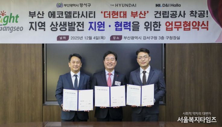 서울복지타임즈 이재연 기자 | 부산 강서구는 ㈜현대백화점이 부산 에코델타시티에 추진 중인 ‘더현대 부산’ 사업의 착공신고를 4,531억 원 규모의 도급계약 체결과 동시에 신속하게 처리했다고 밝혔다.