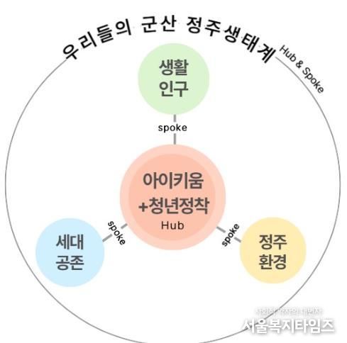 허브-앤-스포크 전략은 핵심 분야(허브)에 정책 역량을 집중하고, 주변 분야(스포크)와 연계해 효과를 극대화하는 방식으로, 군산시는 ‘아이키움’과 ‘청년정착’을 두 개의 핵심축으로 설정했다.