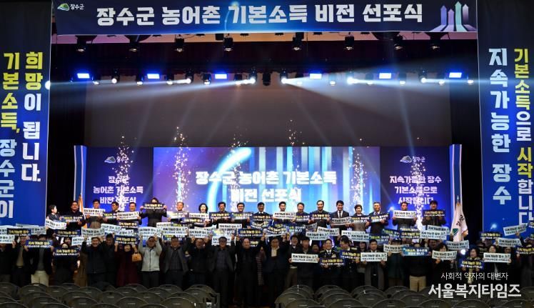 서울복지타임즈 이재연 기자 | 장수군은 8일 한누리전당 산디관에서 ‘농어촌 기본소득 비전 선포식’ 행사가 성황리에 개최됐다고 밝혔다.