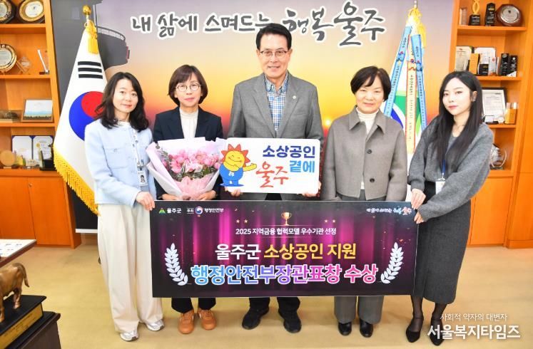 서울복지타임즈 이재연 기자 | 울산 울주군이 행정안전부가 주최한 ‘2025 우수 지역금융 협력모델’ 평가에서 우수기관으로 선정돼 행정안전부장관 표창을 수상했다고 9일 밝혔다.