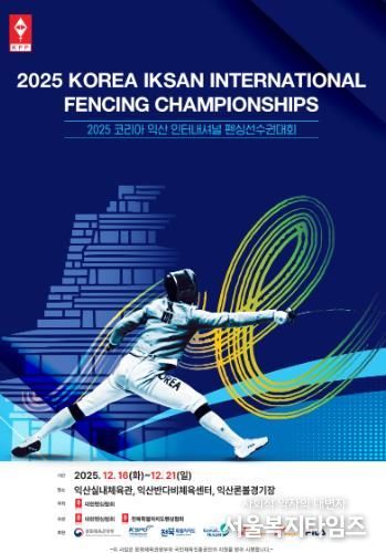 익산시는 오는 16~21일 익산실내체육관과 반다비 체육센터에서 '2025 코리아 익산 인터내셔널 펜싱선수권대회'가 열린다고 12일 밝혔다.