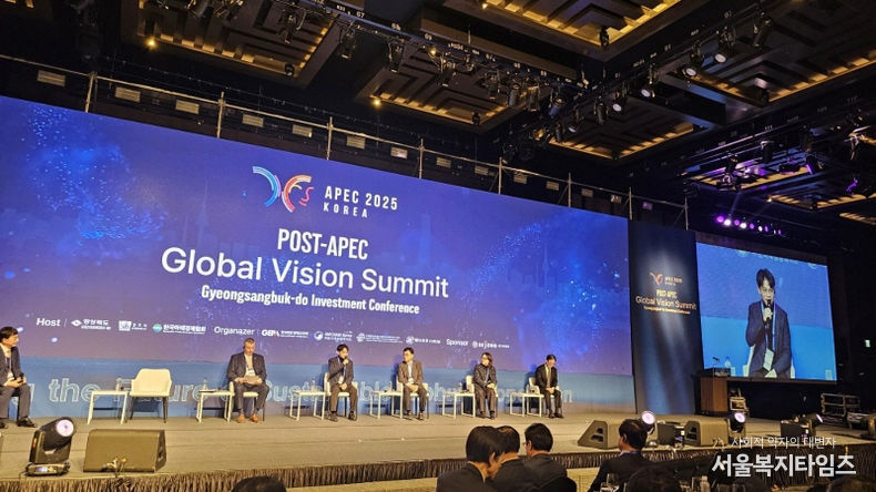 서울복지타임즈 이재연 기자 | 27일 개막한 'Post-APEC Global Vision Summit'에는 국내외 기업인과 외교 관계자를 포함한 700여 명이 참석했다. 회의는 AI, 바이오, 공급망, K-컬처를 주요 의제로 다루며, 포스트 APEC 시대 국제 협력의 중요성을 강조했다. 경북 22개 지자체장은 투자 확대와 글로벌 연계를 강화하겠다는 의지를 담은 '포스트 APEC 비전 선언'을 발표했다.