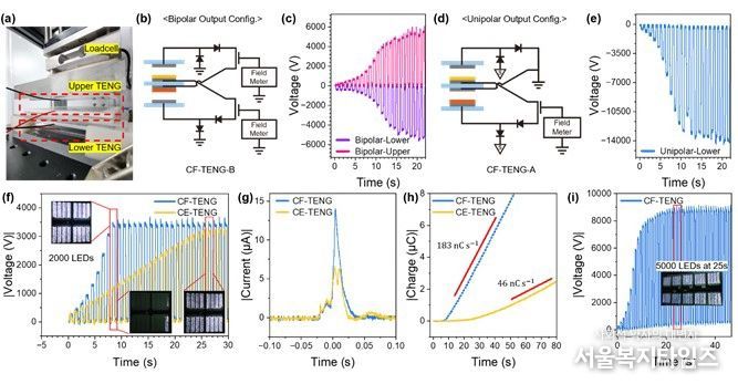 서울복지타임즈 이재연 기자 | 경상국립대학교 자연과학대학 물리학과 이종진·공재민 교수 공동 연구팀(제1저자 박사과정 정지원 학생)이 느리고 불규칙한 움직임에서도 몇 초 안에 수 kV(킬로볼트) 전압을 만들어내는 새로운 마찰전기 나노발전기 구조를 개발했다.