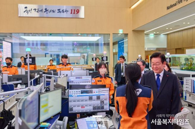 이 대통령은 먼저 소방청 119 종합상황실을 방문해 긴급 신고 접수와 출동 지휘 등 대응 현장을 직접 살폈다. 이어 중앙119 구급 상황 관리센터와 119 항공 운항 관제실에서 국민의 생명과 안전을 지키는 소방대원들의 노고를 치하했다.