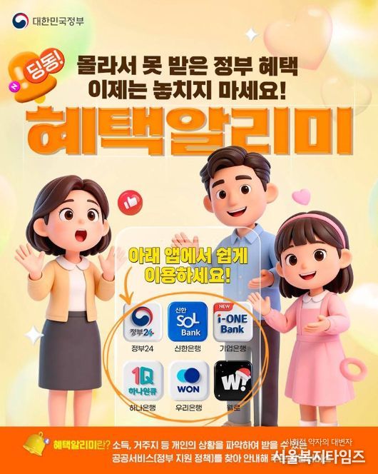 소득, 거주지 등 개인의 상황을 파악하여 받을 수 있는 공공서비스(정부 지원 정책)를 찾아 안내해 주는 알림서비스