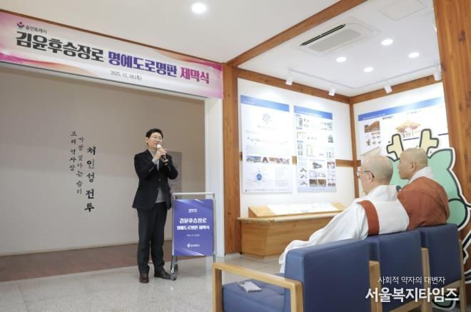 서울복지타임즈 이재연 기자 | 용인특례시는 18일 처인구 남사읍에 있는 처인성역사교육관에서 ‘김윤후승장로’ 명예도로명판 제막식을 열었다.