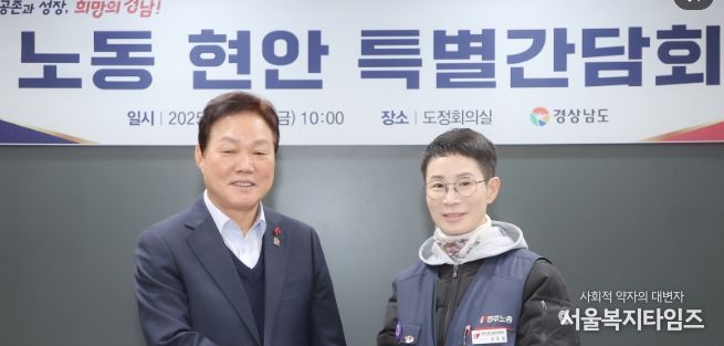 서울복지타임즈 이재연 기자 | 경상남도는 민주노총 경남지역본부와 기업 노동조합 지회장들과 만나 지역 노동 현안에 대한 의견을 나누고, 노동 존중 및 상생 노사문화 조성을 위한 협력을 다짐했다.