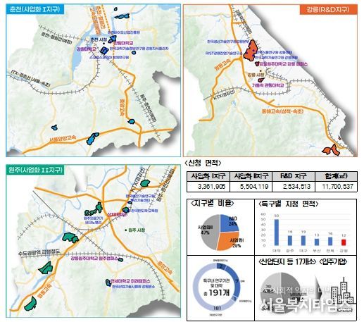 다만 춘천·원주·강릉 개별 도시 단위로는 여전히 지정 요건 충족에 한계가 있었던 만큼 도는 중앙정부와의 협의 과정을 통해 3대 도시의 연구·산업 역량을 하나로 결집하는 연합형 연구개발특구 모델을 제안했으며 그 결과 이번 신규 지정에 이르게 됐다.