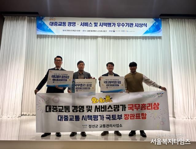 서울복지타임즈 이재연 기자 | 정선군이 국토교통부가 실시한 ‘대중교통 경영·서비스 및 시책평가’에서 우수한 정책 추진 성과를 인정받아 정부 포상 3관왕을 달성했다고 밝혔다.