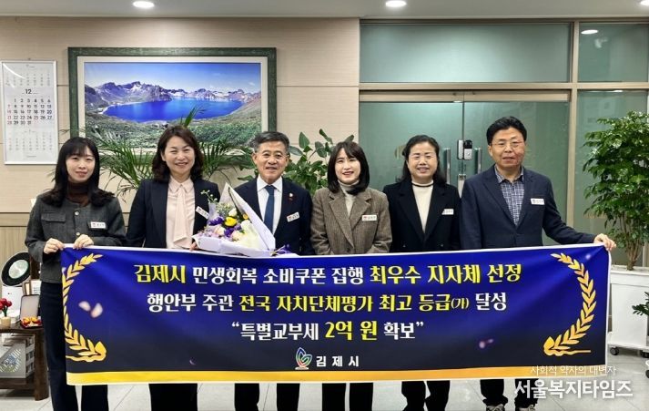 서울복지타임즈 이재연 기자 | 김제시는 243개 전국 자치단체를 대상으로 하는 행정안전부의 「민생회복 소비쿠폰」 집행 평가에서 기초 시(市) 부문 최고등급인 가등급을 획득하며 특별교부세 2억원을 확보했다고 밝혔다.