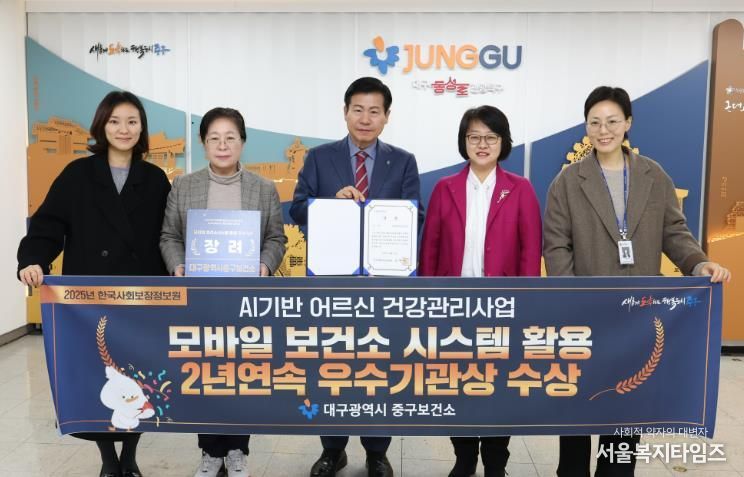 서울복지타임즈 이재연 기자 | 대구 중구보건소는 지난 18일 한국사회보장정보원이 주관한 ‘AI·IoT 기반 어르신 건강관리사업 모바일보건소 시스템 활용 평가’에서 2년 연속 장려상을 수상했다고 밝혔다.