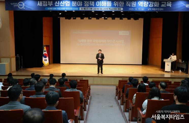 서울복지타임즈 이재연 기자 | 무안군은 지난 19일 남악 복합주민센터 대강당에서 이재명 정부가 국가 신성장 동력으로 육성하고 있는 에너지, AI 등 신산업 분야에 대한 정부 국정과제와 최근 정책 동향에 대한 이해도를 높이기 위해 무안군 공직자들을 대상으로 역량 강화 교육을 실시했다.