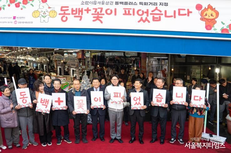 서울복지타임즈 이재연 기자 | 부산 동구 초량전통시장의 초량이음자율상권이 부산동백전 동백플러스 특화거리로 지정됨에 따라 이를 기념하는 행사 '동백+꽃이 피었습니다'가 열렸다.