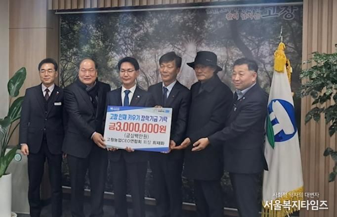 서울복지타임즈 이재연 기자 | 고창농업CEO연합회가 고창군장학재단에 인재육성장학금으로 300만원을 기탁하며 따뜻한 나눔에 나섰다.