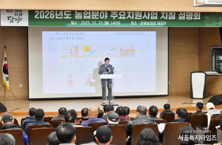 서울복지타임즈 이재연 기자 | 담양군은 지난 22일 담빛농업관 대강당에서 관내 농업인을 대상으로 ‘2026년도 농업 분야 주요 지원사업 지침설명회’를 열고, 농업 분야 보조사업 전반에 대한 추진 방향과 세부 내용을 안내했다.