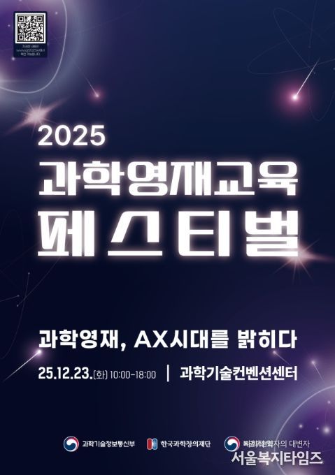 서울복지타임즈 이재연 기자 | 과학기술정보통신부와 한국과학창의재단은 12월 23일, 과학기술컨벤션센터(서울 강남구)에서‘과학영재, 인공지능 전환(AX) 시대를 밝히다’를 주제로 『2025 과학영재교육 축제(페스티벌)』를 개최했다.