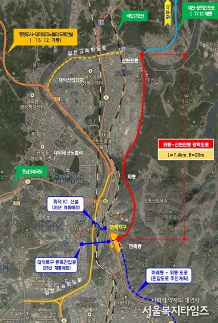 서울복지타임즈 이재연 기자 | 대전시는 대덕구 연축동~신탄진 용정초교를 잇는 ‘와동~신탄진동 도로개설사업’이 22일 기획재정부 재정사업평가위원회 심의를 거쳐 예비타당성조사 대상사업으로 선정됐다.